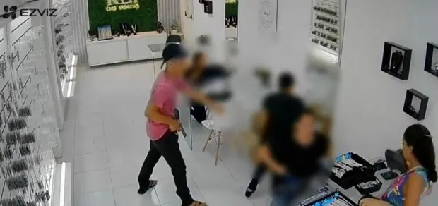 De acordo com as imagens do circuito interno de segurança do estabelecimento, que capturou a ação, a abordagem dos criminosos durou cerca de oito minutos. Os criminosos trancaram a loja com os clientes dentro e levaram as chaves, fugindo em um veículo que foi recuperado.