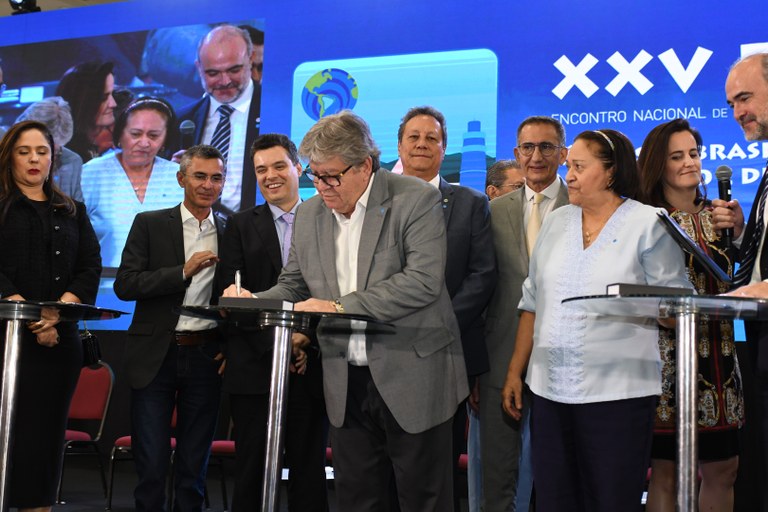 O governador João Azevêdo participou, na noite desta segunda-feira (21), no Centro de Convenções de Natal, da abertura do XXV Encontro Nacional dos Comitês de Bacias Hidrográficas (Encob), ocasião em que os estados da Paraíba, Sergipe, Bahia e Rio Grande do Norte assinaram  o Pacto Nacional de Governança das Águas, que representa uma pactuação entre governos federal e estaduais para promover ações estratégicas nas áreas de segurança hídrica, segurança de barragens e saneamento básico, garantindo dignidade às pessoas.