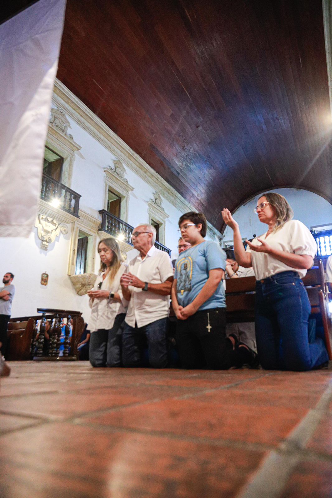 O prefeito Cícero Lucena e a primeira-dama Lauremília Lucena participaram nesta terça-feira (1º) de uma missa de ação de graças no Mosteiro de São Bento, Centro da Capital, pela decisão judicial que reparou a injustiça cometida contra a família Lucena.