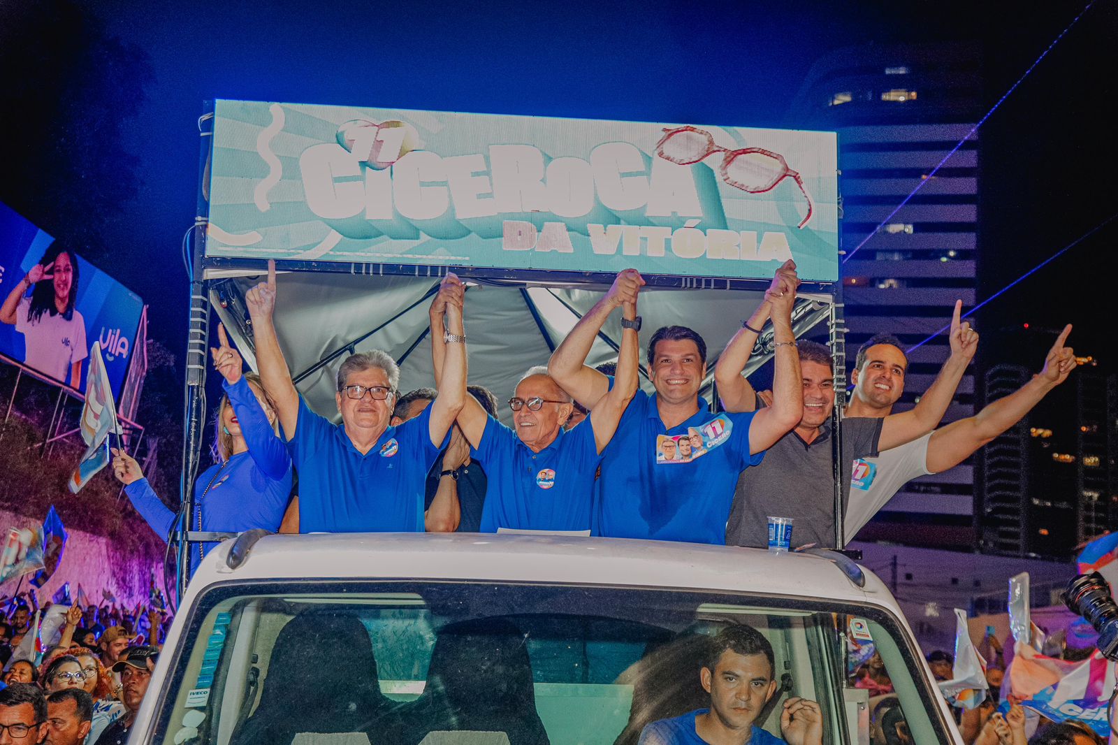 A concentração foi próximo ao cruzamento com a avenida Tito Silva, depois seguiu até o Busto de Tamandaré, com uma multidão acompanhando todo o percurso. O evento foi animado por dois trios elétricos, carros de som e muita festa dos apoiadores de Cícero Lucena e Leo Bezerra. Um ‘mar azul’ se formou – gente vestida na cor da campanha ‘João Pessoa no Caminho Certo’. O prefeito agradeceu a mobilização, aos mais de 205 mil votos do primeiro turno e projetou um novo mandato em parceria com o Governo da Paraíba e o Governo Federal.