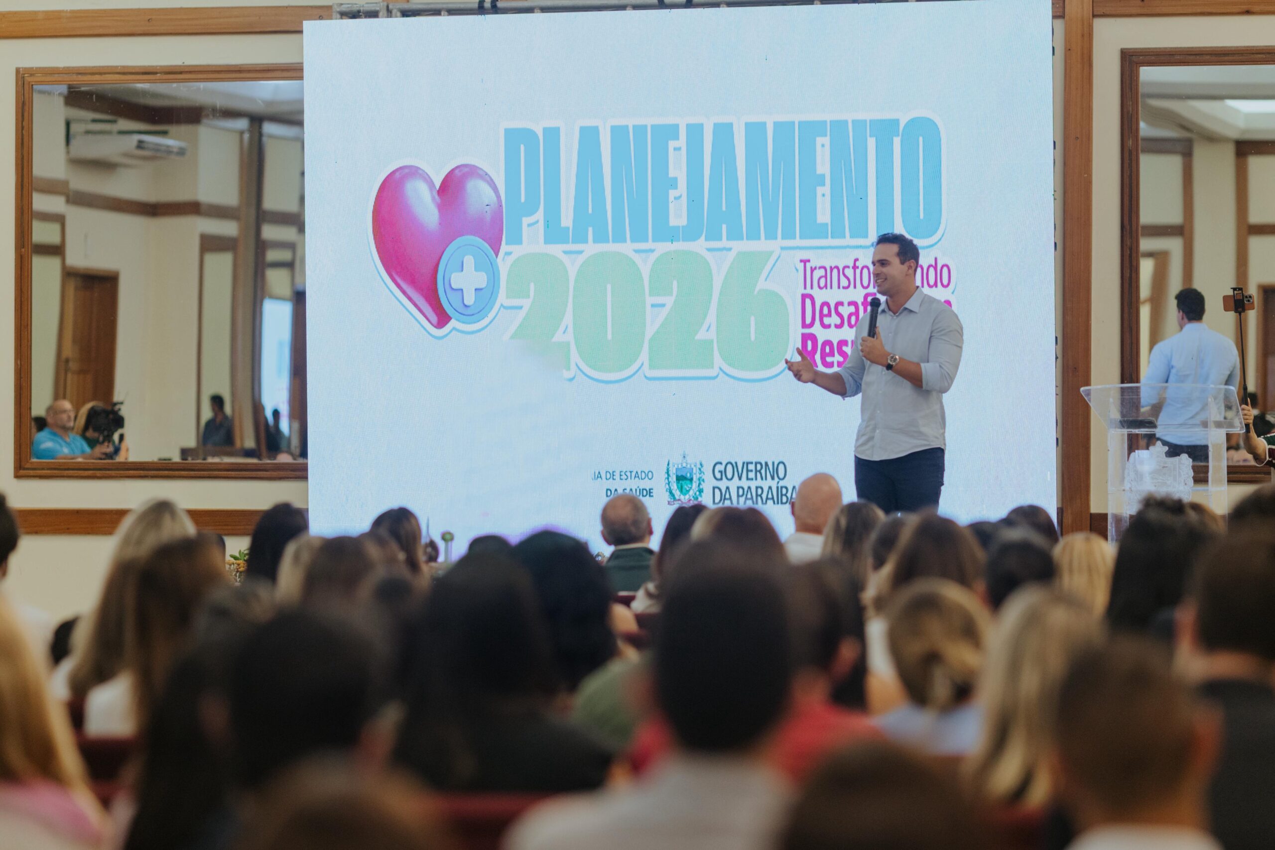 O governador em exercício da Paraíba, Lucas Ribeiro, cumpriu agenda administrativa em Campina Grande, na tarde desta terça-feira (24), participando de atividades voltadas ao fortalecimento das políticas públicas nas áreas da saúde e da proteção às mulheres. O primeiro compromisso foi a participação no evento “Planejando 2026: Transformando Desafios em Resultados”, promovido pela Secretaria de Estado da Saúde, no Garden Hotel.