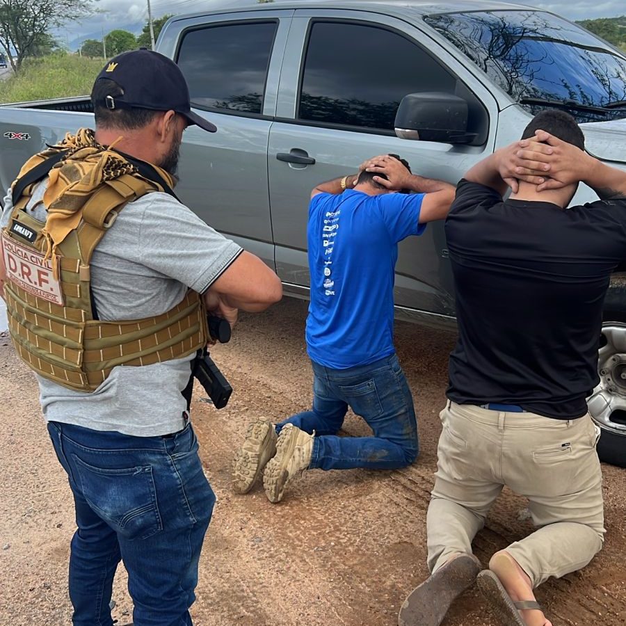 Durante a abordagem, dois indivíduos que estavam no veículo de apoio foram presos em flagrante, sendo apreendida com eles uma arma de fogo ilegal. Um terceiro envolvido também foi localizado e detido no decorrer das ações. Os suspeitos foram conduzidos à Delegacia de Roubos e Furtos de Campina Grande, onde foram adotados os procedimentos legais cabíveis. Aparelhos celulares apreendidos serão periciados e devem auxiliar no aprofundamento das investigações.