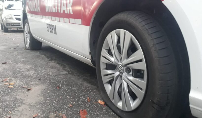 Pelo menos três viaturas da Polícia Militar tiveram os pneus rasgados nas três ruas, nos…