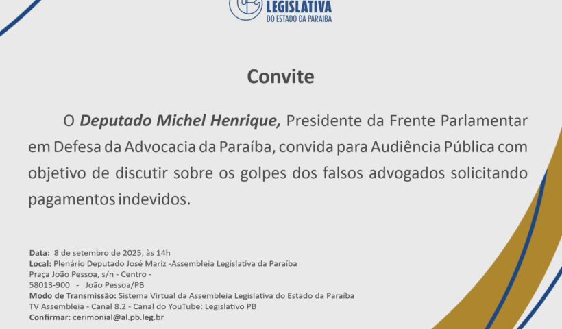 Ver mais Assembleia Legislativa realiza audiência pública sobre fraudes digitais envolvendo falsos advogadosParcerias estratégicas do BNB fortalecem indústria e cultura na Paraíba