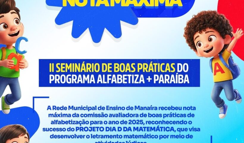 Manaíra é nota máxima no II Seminário de Boas Práticas do Alfabetiza Mais Paraíba